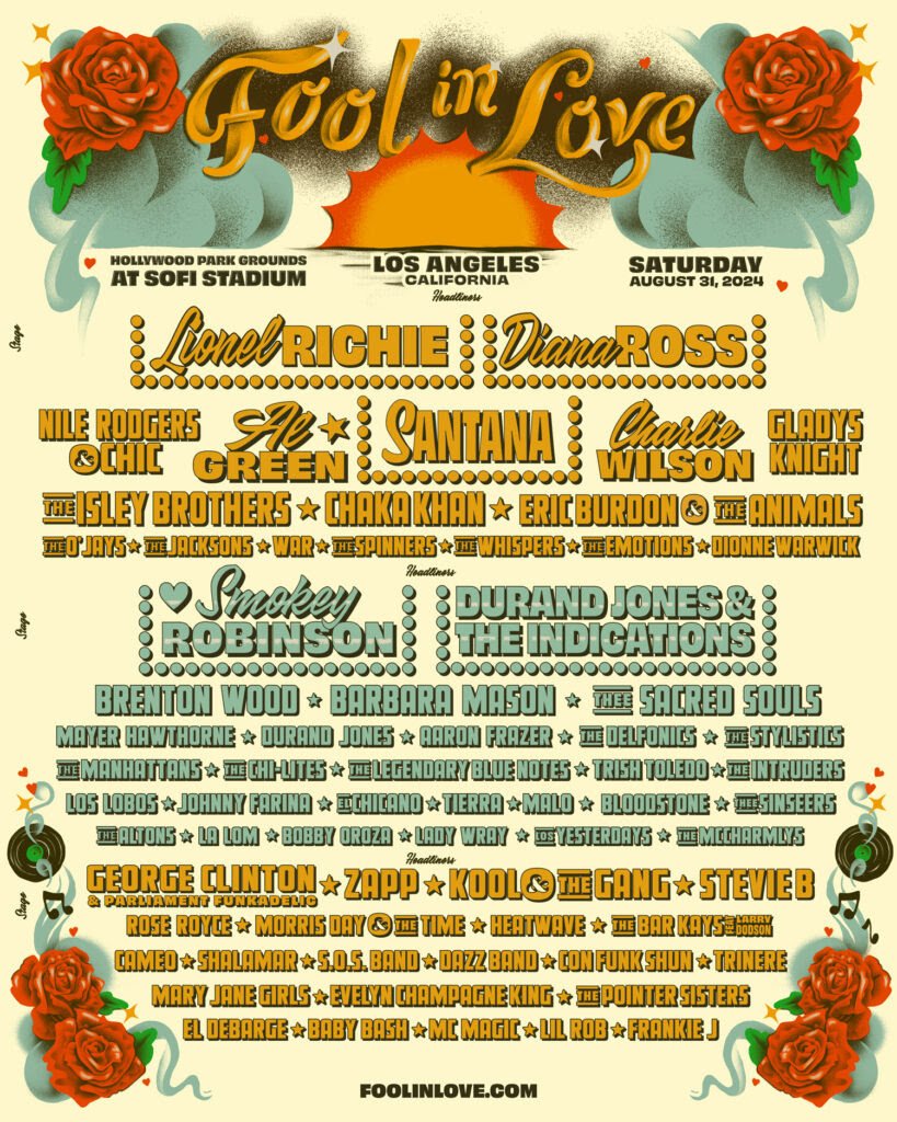 Fool In Love 2024 - Los Angeles, CA Saturday, August 31, 2024 12:00 PM 10:00 PM Hollywood Park 1001 Stadium Drive Inglewood, CA, 90301 United States (map) Google Calendar ICS Learn more