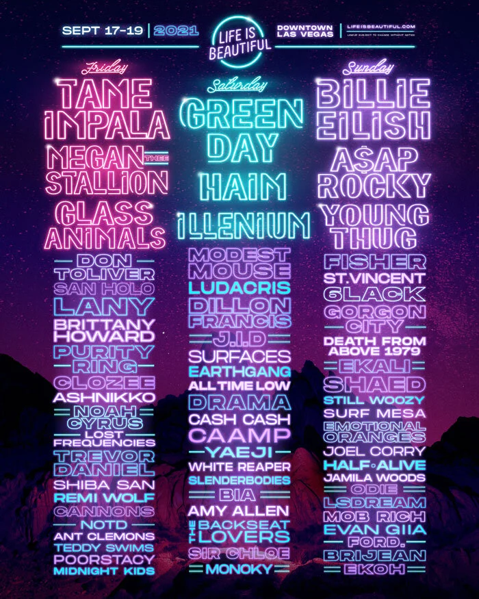Back to All Events Life Is Beautiful Music - Las Vegas, NV Friday, September 17, 2021 2:00 PM Sunday, September 19, 2021 10:00 PM Downtown Las Vegas Las Vegas, NV United States (map) Google Calendar ICS Learn more